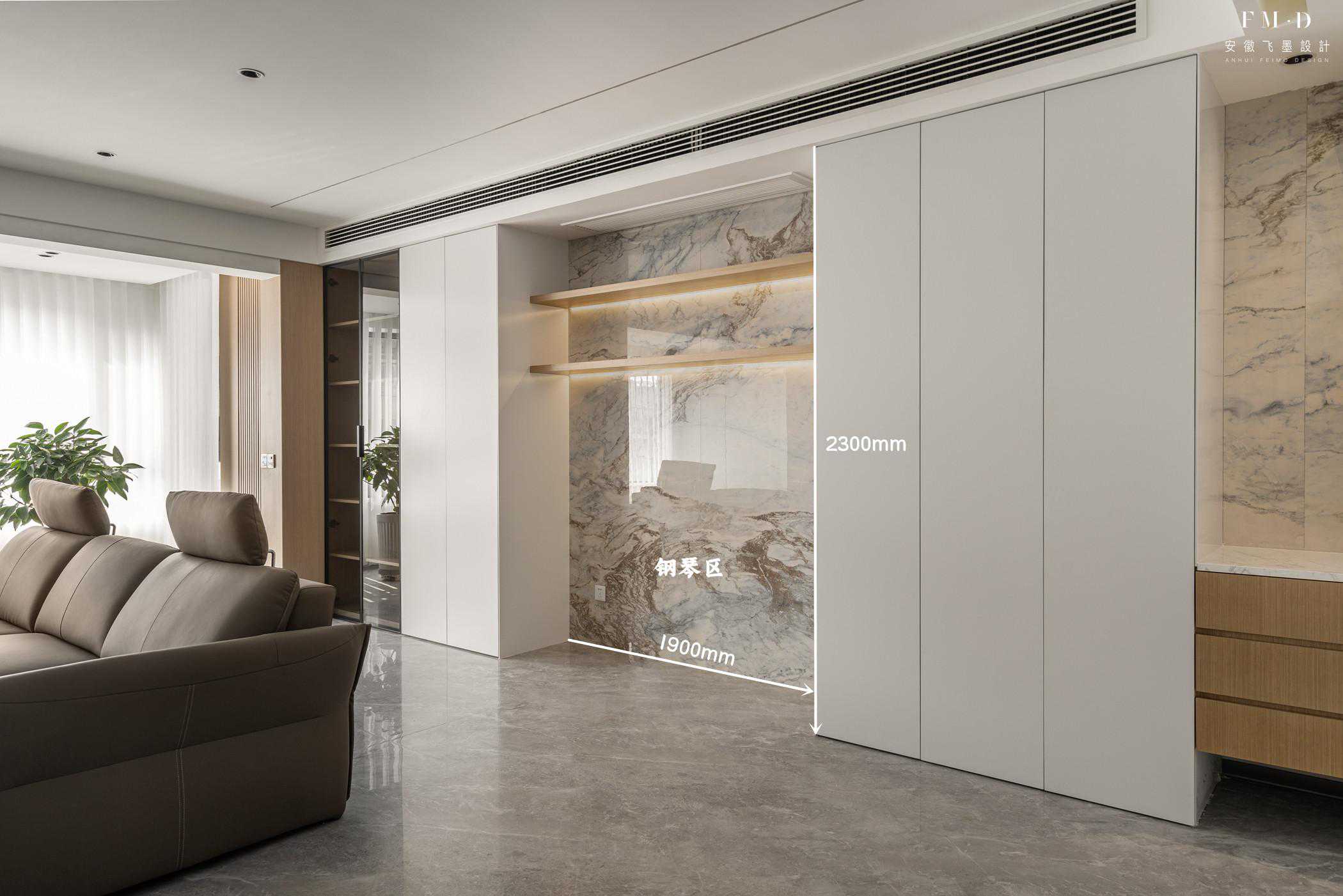 家里有钢琴的,也可以将柜子留出一部分空间摆放钢琴,墙面铺装岩板,高级又能保护墙面。