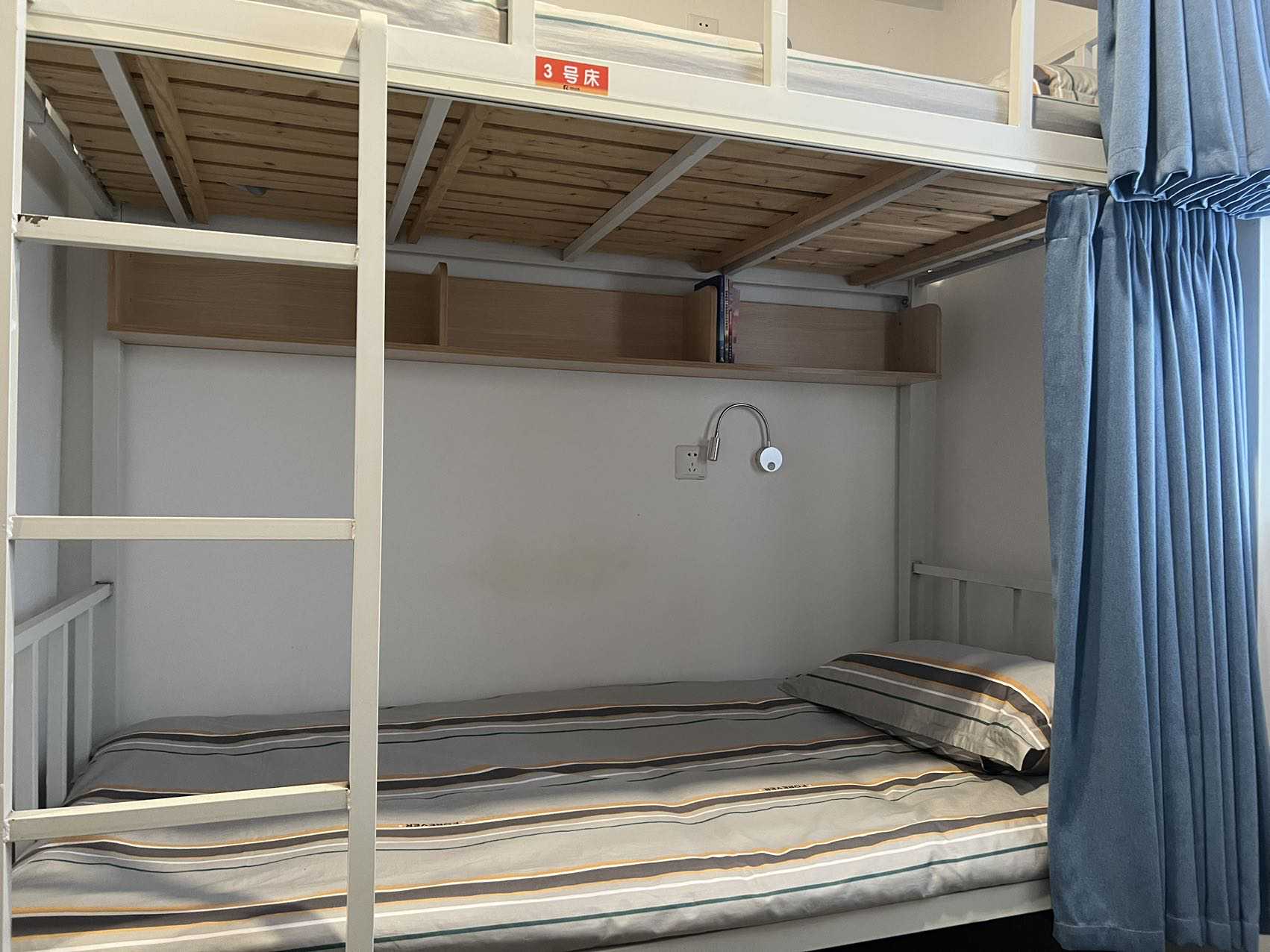 怡辰公寓床铺内有插座、电灯和书架等澎湃新闻记者陈斯斯图
