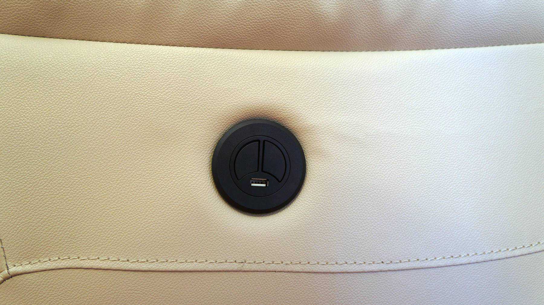 ▲左右扶手下面是电动调节按钮,每侧还有一个USB充电口供智能设备充电