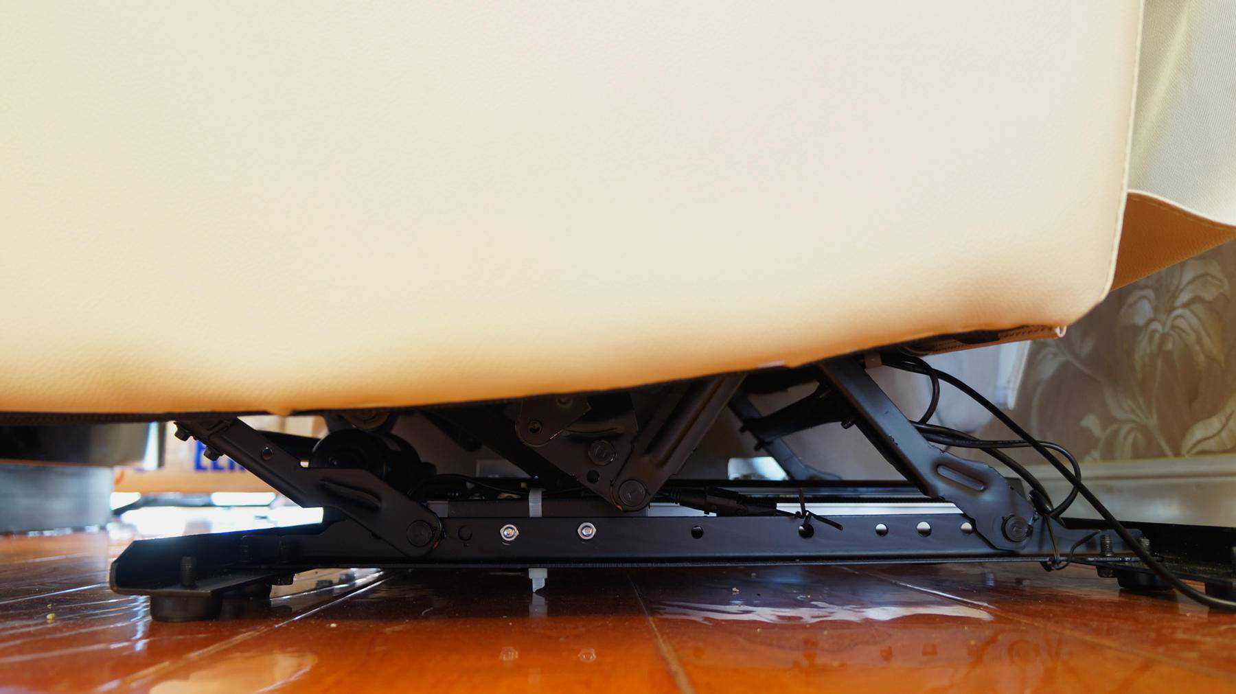▲沙发骨架是金属材质,下面有防滑垫保护地板及防止滑动
