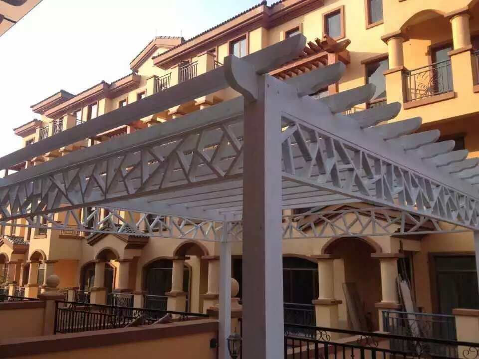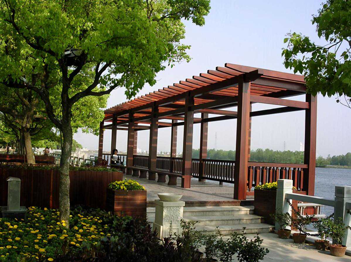 防腐木花架在户外也是很普遍的,它既能够起到遮光休息的用处,也可以装点园景。一方面任人歇足休息、欣赏美景;一方面创造攀援植物的生长条件。因而可以说花架是贴近于自然的园林景观。