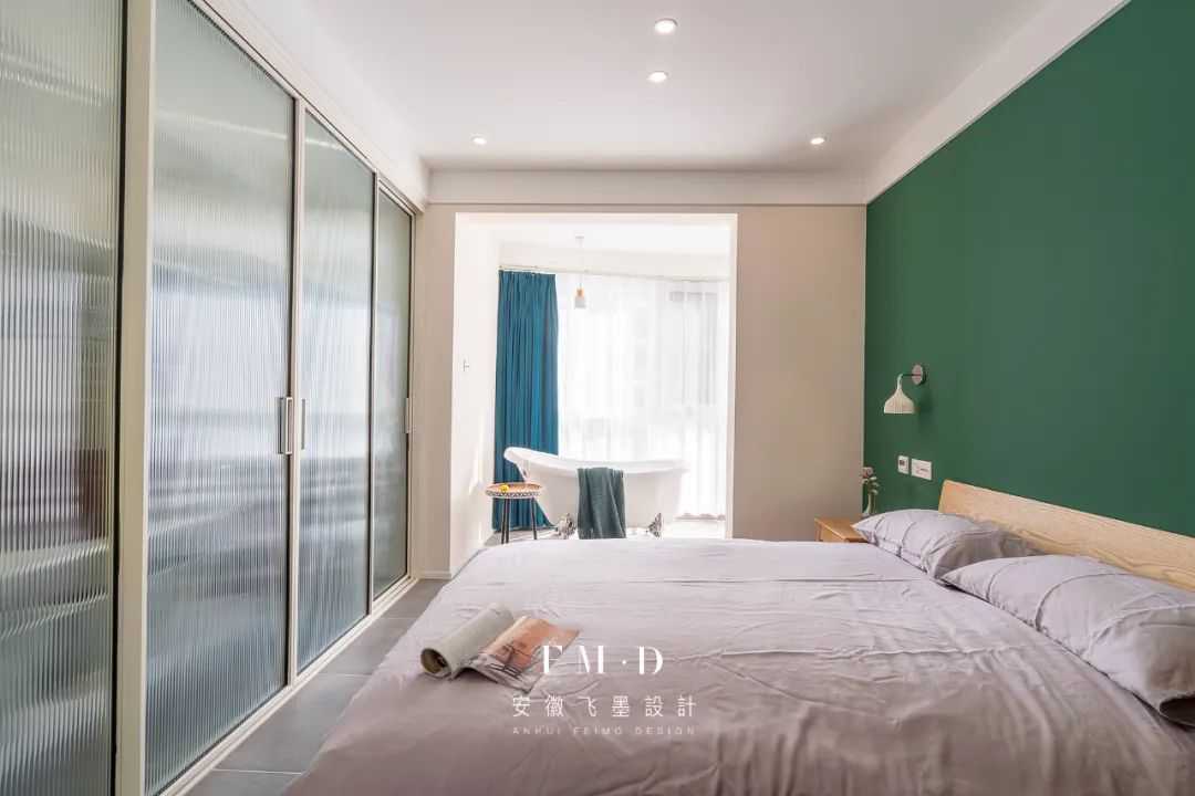 平开门颜值高,但是,要注意与床头柜保持距离,大概40-60cm左右: