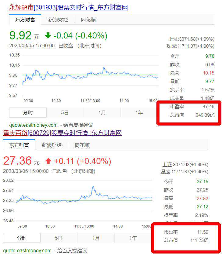 因为经营有方,永辉超市的市值已经达到了900余亿,是重百的9倍。